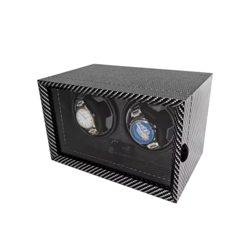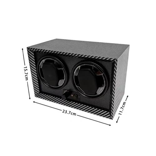 Ova kutija je izrađena od drveta sa karbonskom oblogom, što joj daje sofisticiran i suvremen izgled. Unutra se nalaze dva rotirajuća jastučića koji drže satove različitih širina narukvica i omogućavaju njihovo namotavanje u oba smjera (desno i lijevo). Motor je tih i nečujan, a namotavanje se vrši po programima: 2 min desno / 6 min pauza, 2 min lijevo / 6 min pauza, i ciklus od 5 min desno + 5 min lijevo, zatim pauza — sveukupno 3‑satni ciklus.