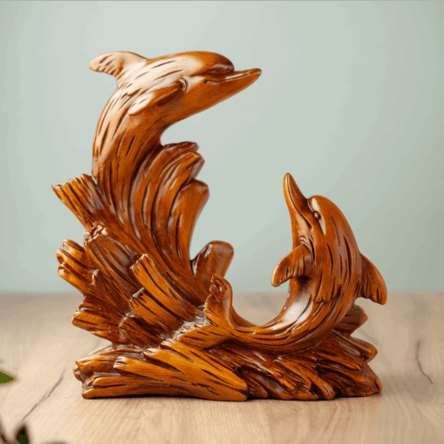 Držač za vino u obliku delfina je unikatan dekorativni dodatak koji spoj ljepotu morskog motiva i funkcionalnost – savršeno drži bocu vina dok unosi dašak elegancije u kuhinju, trpezariju ili bar.