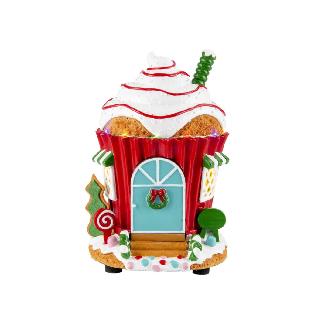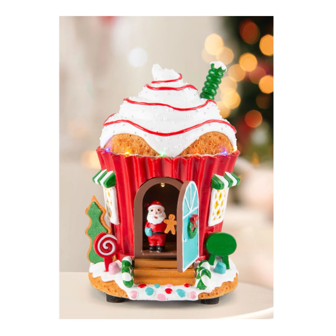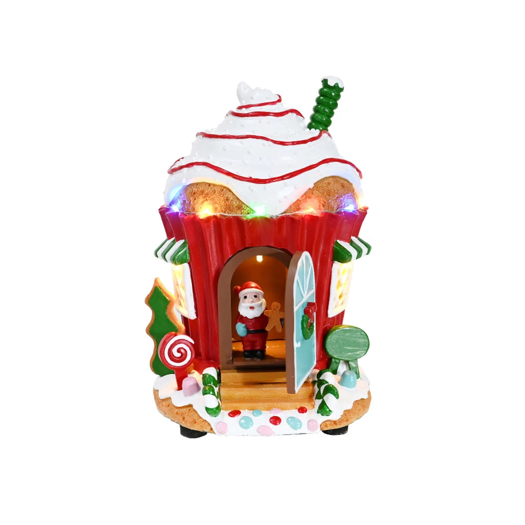 Ovaj čarobni novogodišnji ukras prikazuje Kuću Djeda Mraza sa LED lampicama koje svijetle i stvaraju prazničnu atmosferu. Slatki Djed Mraz otvara vrata, izlazi napolje i vraća se unutra, unoseći veselje i magiju u svaki prostor.