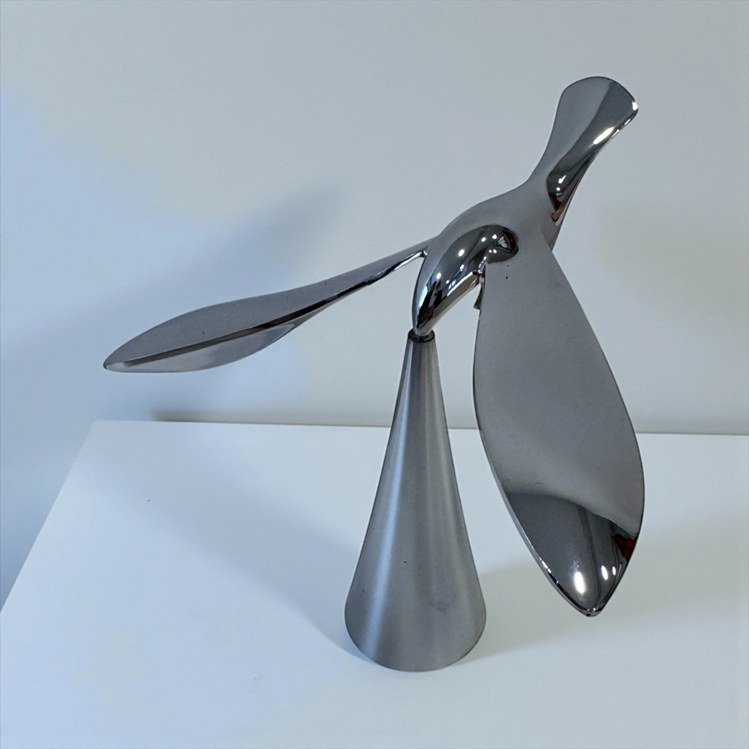 Ovaj jedinstveni balansirajući otvarač u obliku ptice spaja funkcionalnost i umjetnički dizajn. Izrađen je od kvalitetnog mesinga sa poliranom, hromiranom završnom obradom, zahvaljujući kojoj zadržava dugotrajan sjaj i otpornost na habanje.