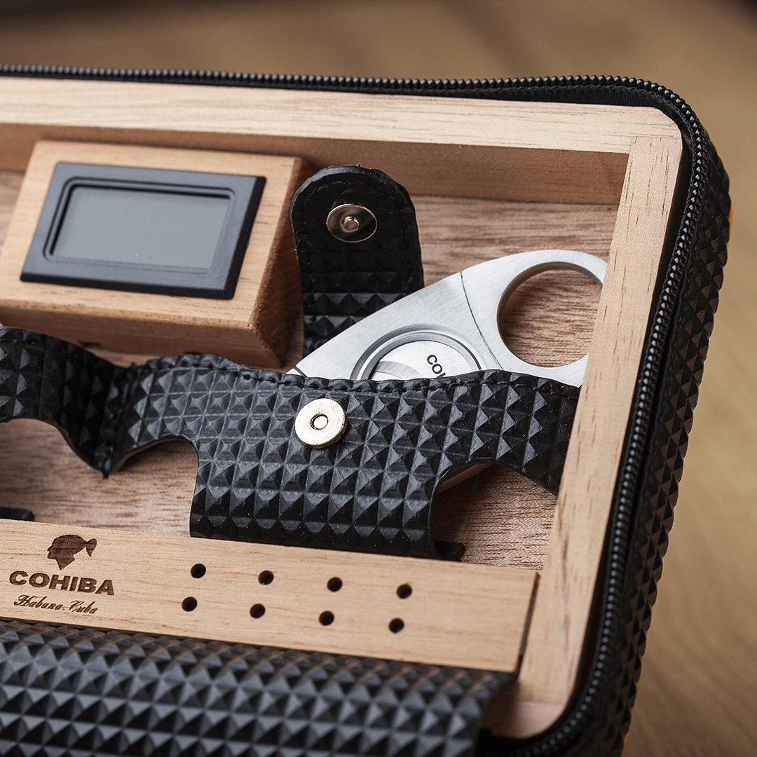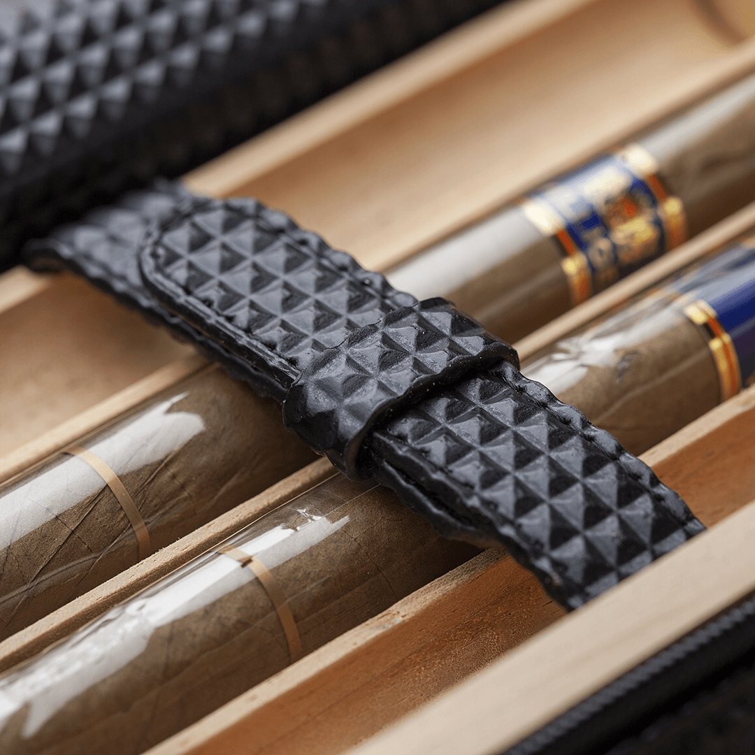 Ovaj ekskluzivni putni humidor za tompuse je idealan izbor za sve putnike koji žele uživati u cigari u svakom trenutku. Sa integrisanim sjekačem, omogućava vam da vaši tompusi budu spremni za uživanje, bilo gdje i bilo kada. Dizajniran u elegantnoj crnoj boji sa žutom ivicom, ovaj humidor ne samo da pruža vrhunsku zaštitu za vaše cigare, već svojim atraktivnim izgledom ostavlja snažan dojam luksuza i sofisticiranosti. Kompaktan i funkcionalan, savršeno je rješenje za sigurno skladištenje i nošenje vaših tompusa na putovanjima. Bilo da ga koristite za vlastite potrebe ili kao poklon, ovaj humidor je pravi izbor za istinske ljubitelje cigara.