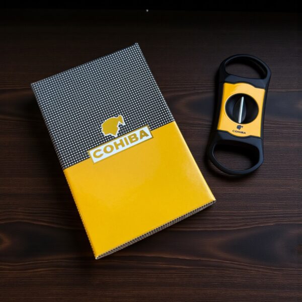 Sjekač za tompuse sa V-cut sječivom dizajniran je za ljubitelje cigara koji žele koncentrisan protok dima i puniji ukus. Upečatljiv Cohiba motiv u crno-žutoj boji daje mu autentičan izgled, dok sopstvena kutija čini oavj sjekač odličnim izborom i za poklon.