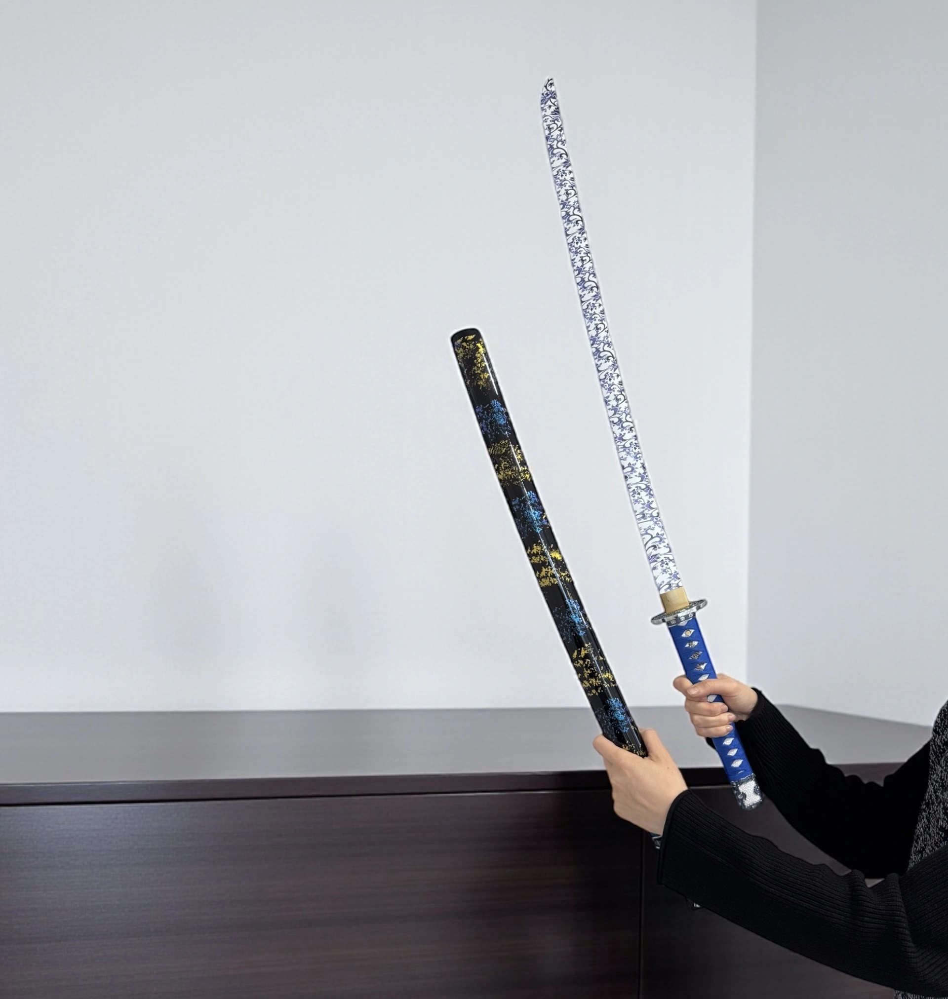 Katana Spirit Warrior je elegantna ukrasna katana s detaljno izrađenom oštricom i drškom, savršena za kolekcionare i ljubitelje samurajske estetike. Njezina atraktivna izrada i detalji u plavoj i crnoj boji čine je istaknutim dekorativnim predmetom za svaki dom ili kancelariju. Idealna je kao poklon za entuzijaste borilačkih vještina, ljubitelje japanske kulture i dekorativnih mačeva, a zahvaljujući standardnoj dužini i visokokvalitetnoj izradi, kombinuje autentičnost i snažan vizuelni efekat.