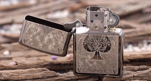 Zippo Ace Filigree Black Ice 28323 zadržao je svoj visoki metalni sjaj po užim stranicama upaljača. Šire stranice nose pravo malo umjetničko delo, koje će oduševiti ljubitelje kartaških igara. To je prikaz karte kec pik, sa impresivnim filigranskim radom na cijeloj površini. Zippo upaljač nije obično sredstvo uz pomoć kog ćete brzo doći do plamena, on predstavlja dio istorije. Od 1932. godine, u njoj su vitalnu ulogu imali ne samo idejni tvorac Zippo upaljača, već i Vi, odnosno svi obožavaoci male metalne kutije sa čestim prizvukom umjetnosti.